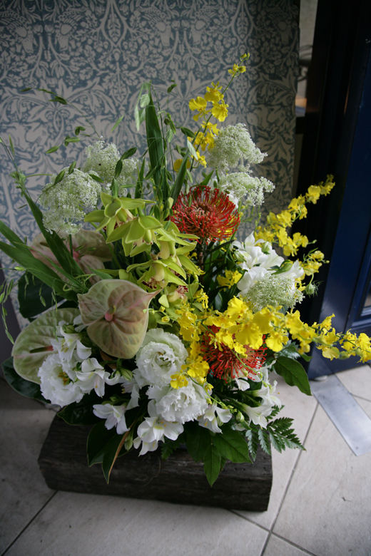 ・ピンクッション・オンシジューム・レースフラワー・アンスリューム・シンビジューム・アルストロメリア・グリーンスケール・トルコキキョウ