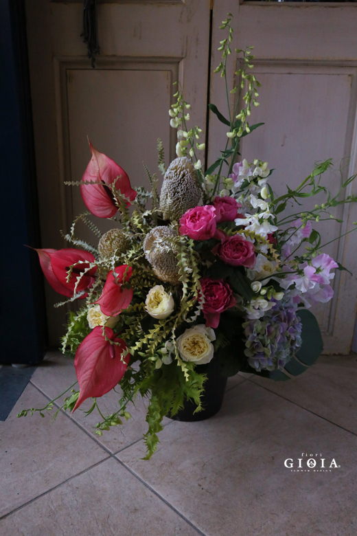 ピンク系で少しバンクシアを活かし個性的にお作りいたしました。