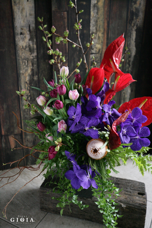 ・チューリップ・バンダ(パープル)・アンスリューム(レッド)・桜(枝もの)・バンクシア(ワイルドフラワー)